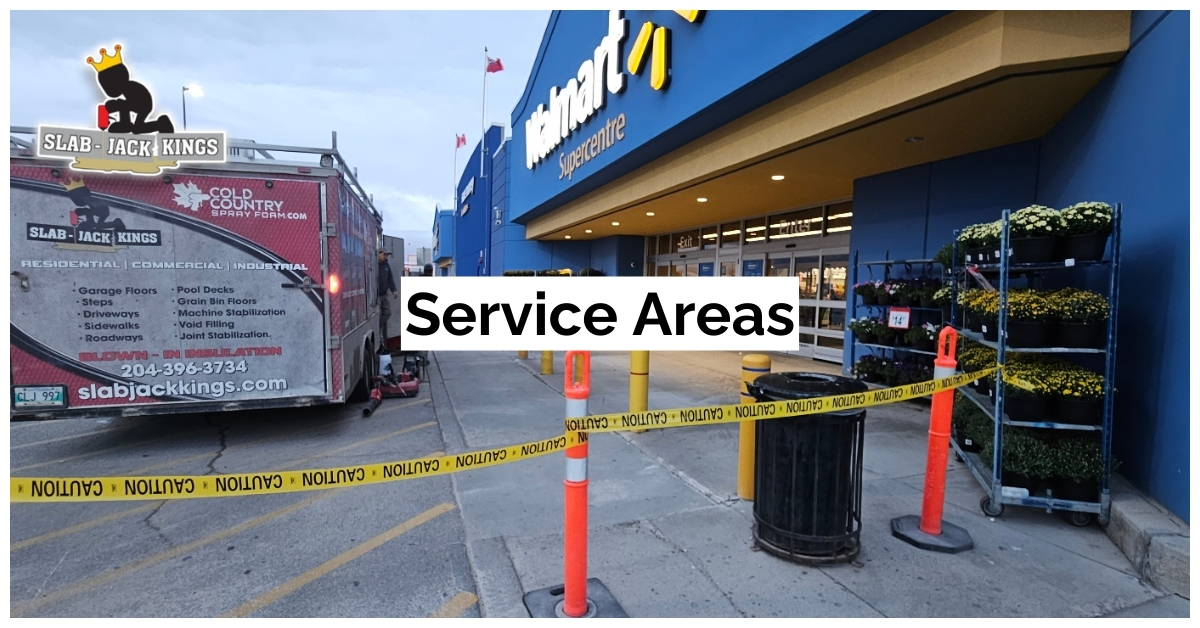 Slab-Jack Kings provides professional polyurethane foam injection services such as concrete lifting & levelling, void filling & soil stabilization, and underslab insulation across Manitoba and Northwestern Ontario. We restore and protect concrete slabs for residential, commercial, industrial, institutional, municipal and agricultural clients—from driveways and sidewalks to warehouse floors, bin pads, wheelchair ramps and freezer rooms.