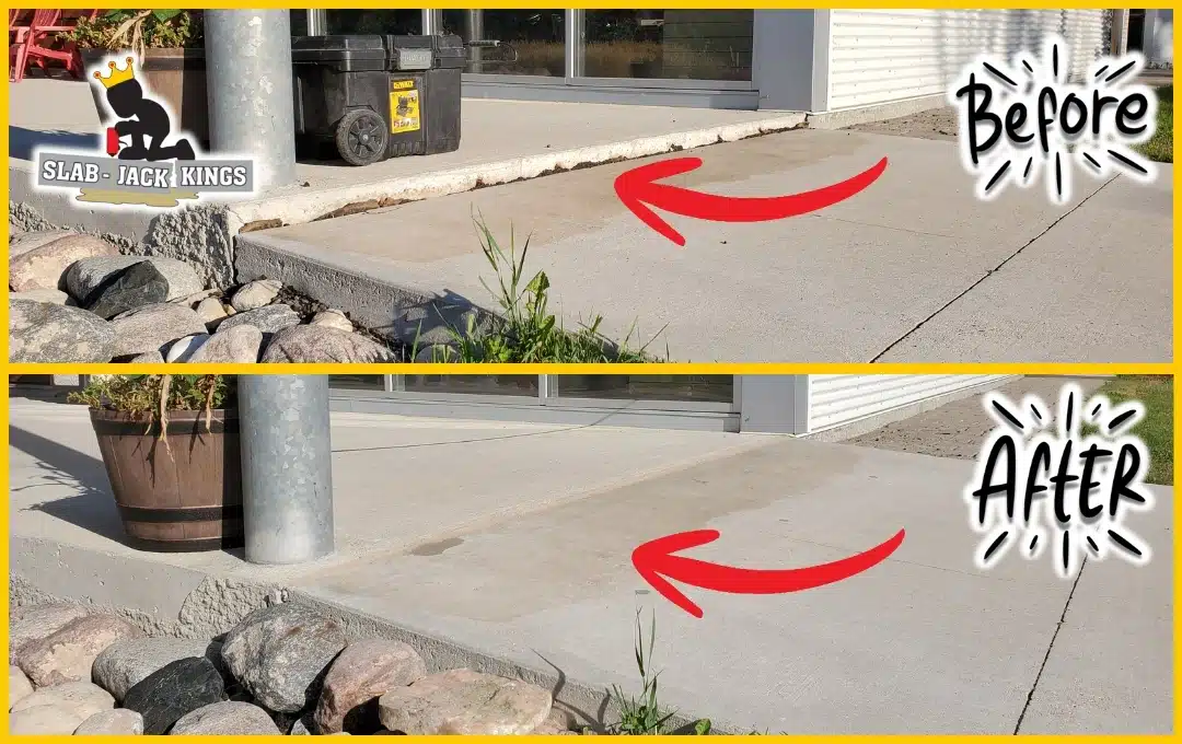 See how our team raised and leveled a sunken sidewalk to the front entrance in Winnipeg by up to 4 inches. This dramatic before & after concrete lifting transformation eliminated trip hazards, restored safe access, and improved curb appeal for this residential home.
